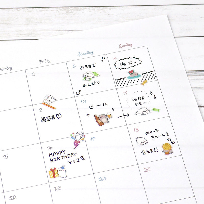 This sticker sheet features an adorable collection of seals in various cute and charming situations!