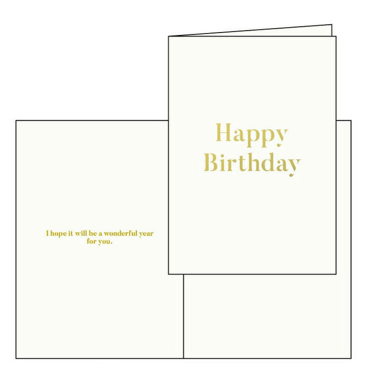 Each card says 'Happy Birthday' on the front and 'I hope it will be a wonderful year for you' on the inside.